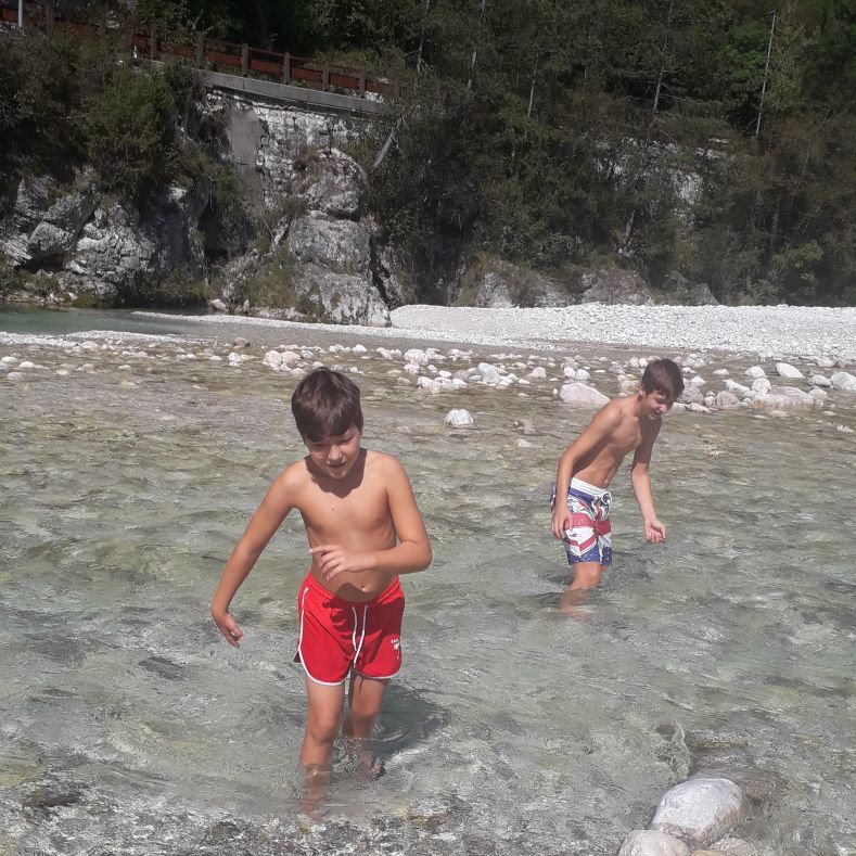 Da Chiusaforte si può pensare di pedalare per un tratto verso sud e raggiungere Resiutta, lungo la strada principale si può mangiare un pollo allo spiedo speciale e un gelato buonissimo. Noi compriamo il pollo e lo mangiamo a Povici di sotto dove si trova una zona sosta camper e dei tavolini per fare uno splendido pic-nic lungo il fiume dove fare il bagno in totale sicurezza.