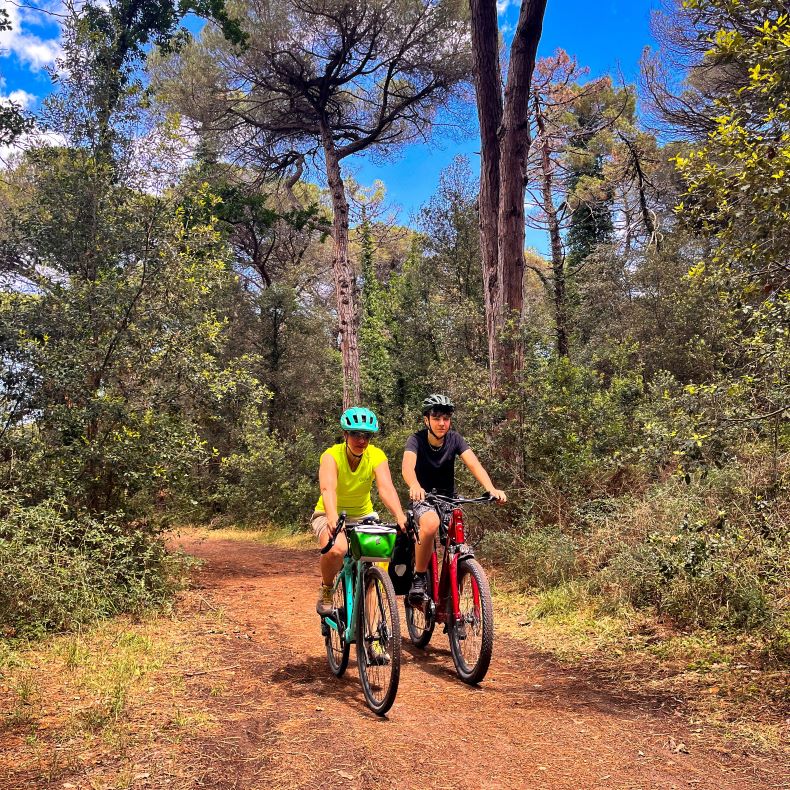 Prima e dopo Classe si pedala all’interno di una fresca pineta per ripararsi dal sole e si raggiunge Cervia.