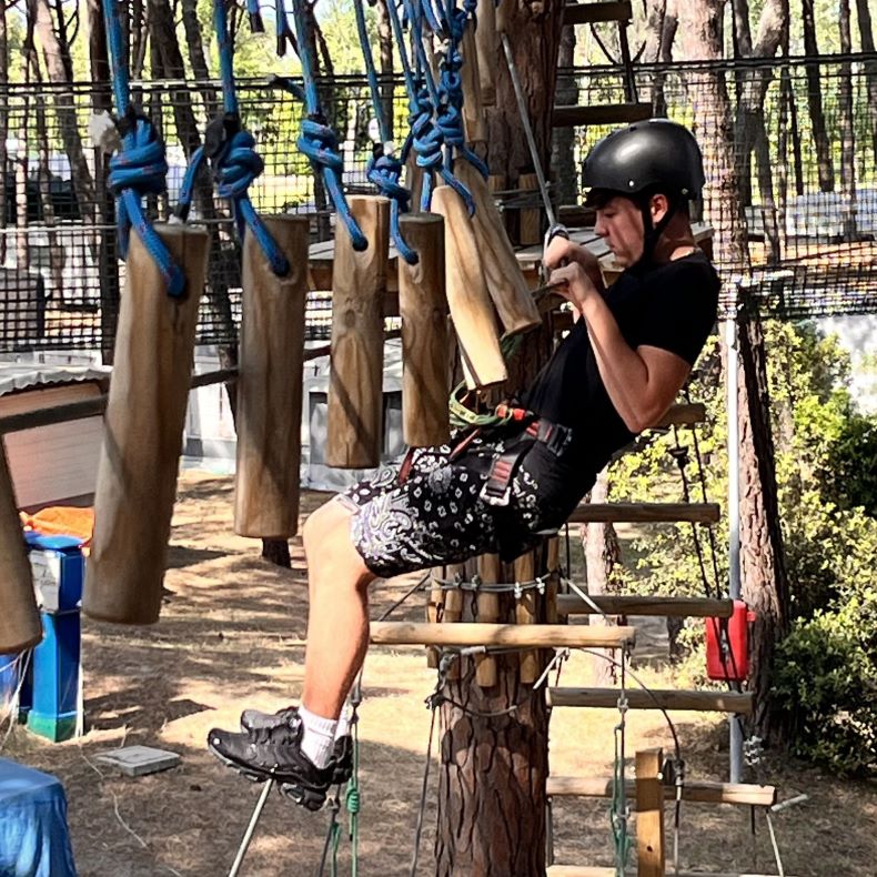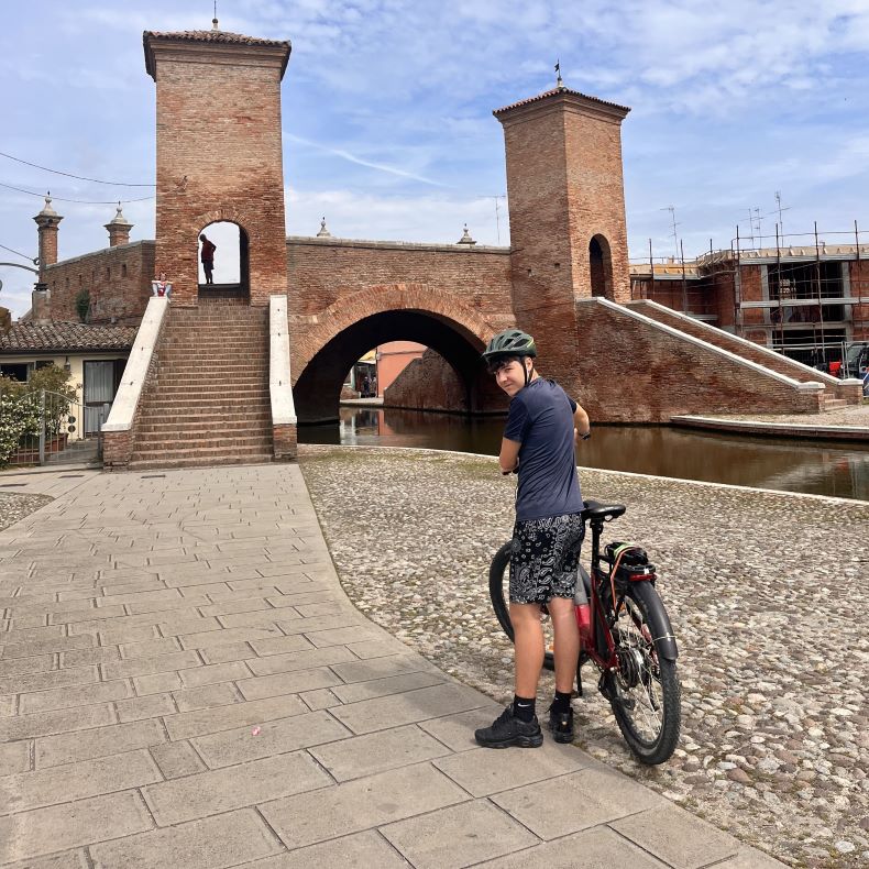Siamo arrivati a Lido di Spina con un giorno di anticipo per organizzare al meglio la partenza. Abbiamo noleggiato la e-bike di Erran, organizzato le borse, scaricato le tracce gpx fornite dal Club del Sole e poi ho convinto Erran a provare il parco avventura. Avendo entrambi paura dell’altezza è stato bello vedere che assieme abbiamo superato le difficoltà.