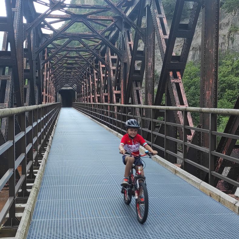 Un’esperienza varia e divertente: Il percorso, specialmente nel tratto italiano da Tarvisio a Chiusaforte, offre un mix entusiasmante di paesaggi naturali mozzafiato e tappe interessanti. Si pedala lungo il tracciato di una vecchia ferrovia, attraversando suggestivi ponti in ferro e lunghe gallerie (munitevi di buone luci!). I bambini adoreranno l’avventura e la possibilità di alternare la pedalata con soste in aree attrezzate. Ad esempio, a Ugovizza troveremo una vecchia stazione ferroviaria riconvertita con un bel parco giochi e una pista di pump track.